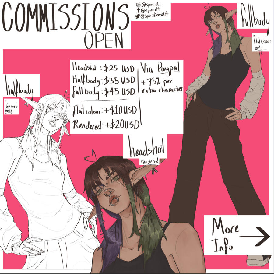 Extra Info:- Extra characters cost +75% each of the OG price; yes it applies to Robux as well, I can do the math. Sketch character sheets are plus 60% of the base price of the type of commission